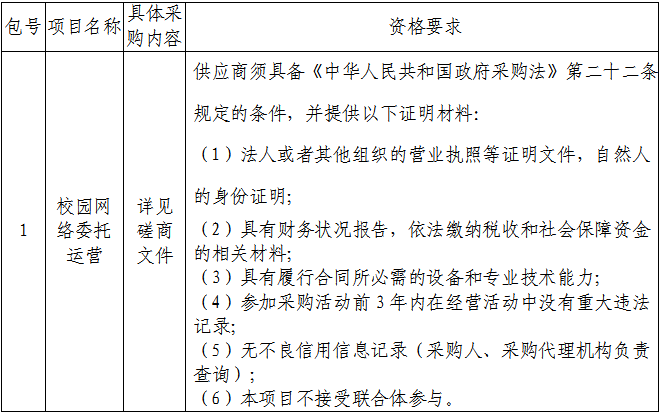 四、采购项目分包情况:山东商务职业学院校园网络委托运营等相关服务,本项目划分为1个包。