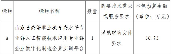 高水平专业群人工智能技术应用专业群企业数字化制造全景实训平台采购项目的潜在供应商应在山东云尚建设项目管理有限公司(烟台市高新区科技大道69号创业大厦西塔裙楼410)获取采购文件,并于2024-11-19 14:30:00(北京时间)前提交响应文件。