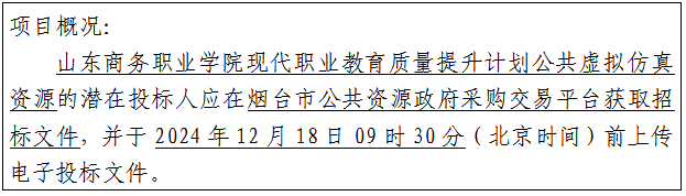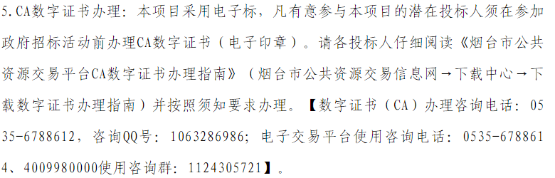 12.请各投标人获取招标文件后及时关注烟台市公共资源政府采购交易平台“答疑文件”页面。