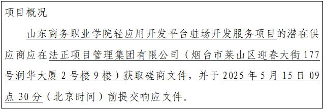 采购需求:本项目为山东商务职业学院轻应用开发平台驻场开发服务项目,共分为1个采购包,采购预算为24万元。具体要求详见磋商文件第二部分采购内容及相关要求。