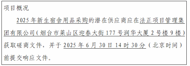 采购需求:本项目为2025年新生宿舍用品采购,共划分为一个包进行采购。