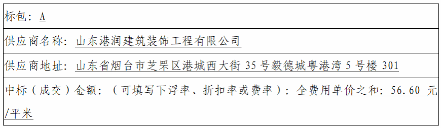 标包A:山东港润建筑装饰工程有限公司(93.68、93.68、95.18)、山东苑丰建筑装饰有限公司(82.32、82.82、86.32)、山东晟松建筑工程有限公司(90.21、92.21、93.71)