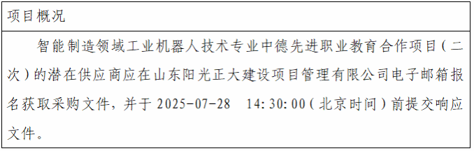 项目名称:智能制造领域工业机器人技术专业中德先进职业教育合作项目(二次)