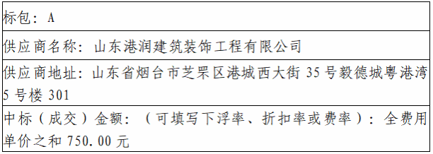 标包A:山东港润建筑装饰工程有限公司(81.5、91.5、93.5)、山东苑丰建筑装饰有限公司(79.3、86.8、86.8)、烟台德庆建筑装饰有限公司(79.34、83.34、83.84)