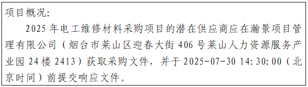 2.开启地点:瀚景项目管理有限公司(烟台市莱山区迎春大街406号莱山人力资源服务产业园24楼开标室)