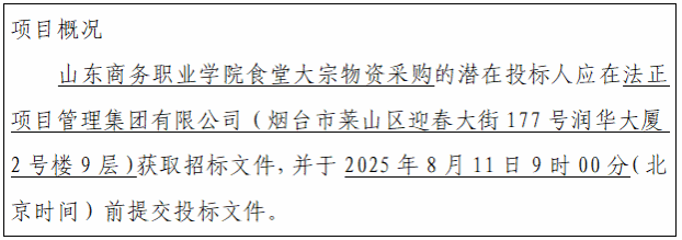 采购需求:本项目为山东商务职业学院食堂大宗物资采购,共分为10个采购包,第1包:大米、面粉、杂粮类;第2包:大豆油(非转基因)、花生油类;第3包:冷鲜畜肉类;第4包:冷冻产品类;第5包:半成品类;第6包:禽蛋类;第7包:调料、食品添加剂、干料杂品类;第8包:包装、餐具、洗洁精类;第9包:面制品类;第10包:时鲜蔬菜类。