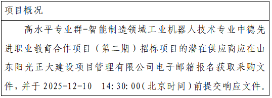 项目名称:高水平专业群-智能制造领域工业机器人技术专业中德先进职业教育合作项目(第二期)