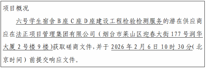 山东商务职业学院六号学生宿舍B座C座D座建设工程检验检测服务竞争性磋商公告