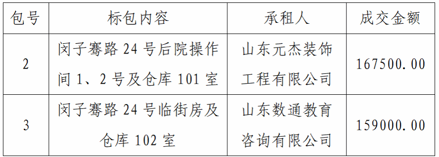 济南校区原临街房及后院仓库租赁项目成交公告