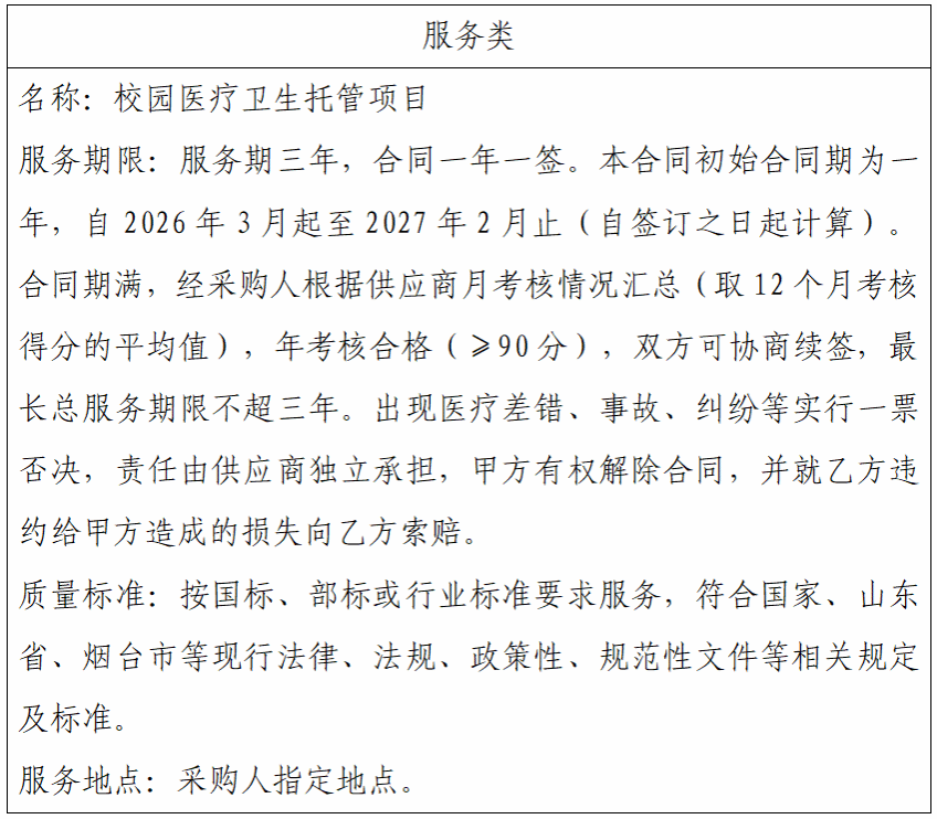 二、项目名称:校园医疗卫生托管项目