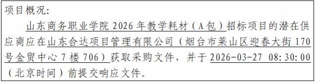 项目名称:山东商务职业学院2026年教学耗材(A包)