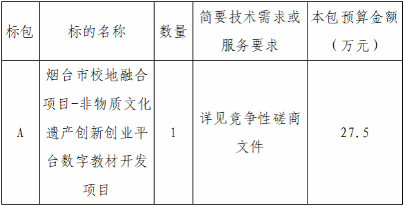 烟台市校地融合项目-非物质文化遗产创新创业平台数字教材开发项目 招标项目的潜在供应商应在 烟台高新区科技大道69号创业大厦西塔裙楼410。获取采购文件,并于2026-04-03 09:00:00(北京时间)前提交响应文件。