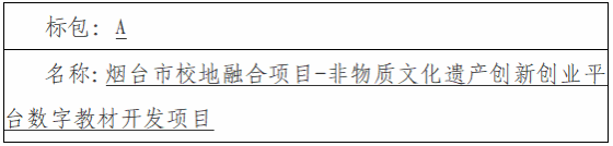 二、项目名称:烟台市校地融合项目-非物质文化遗产创新创业平台数字教材开发项目
