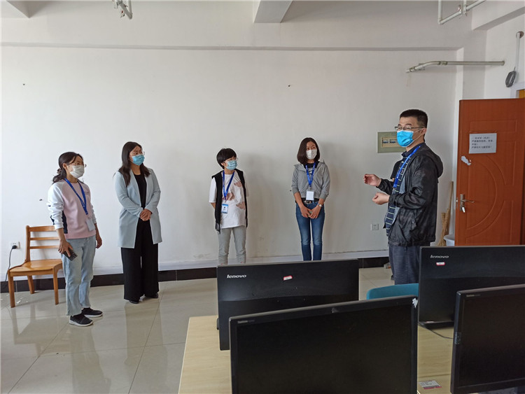教学场所演练。上午9点,师生来到图书楼一楼门口组织学生开展进入教学场所演练。辅导员们现场给学生讲解并维持秩序,要求学生前后间隔一米安全距离,有序上楼来到演练区域机房510。