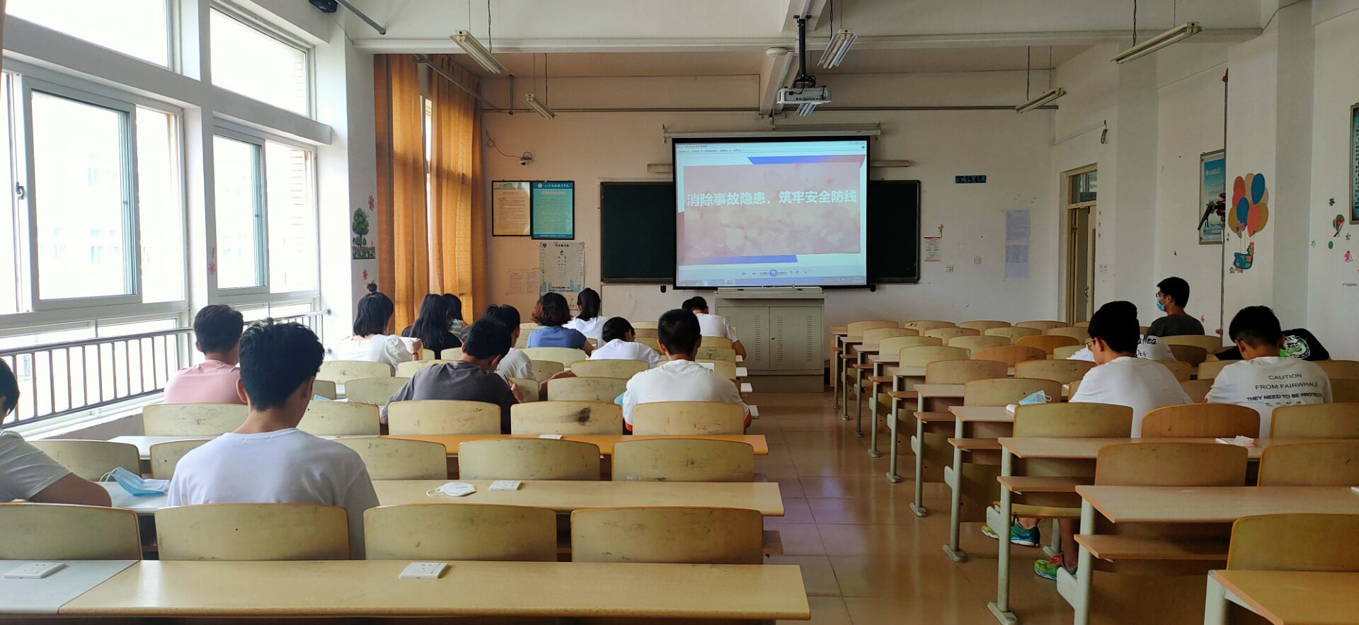 本次“消除事故隐患,筑牢安全防线”主题团课让同学们了解到了“安全生产月”的发展历程和相关事宜。返校同学在教室集中进行团课学习,未返校同学继续网上团课的学习,各班团支书积极组织学生参与团课,同学们积极响应,踊跃发言。各班团支书通过播放PPT的形式进行讲解,对典型事故进行剖析,深刻吸取教训,完善制度措施,再次学习各种事故的应对方式,防范类似事故发生。呼吁同学们积极响应“安全生产月”,注意自身安全,并共同维持公共环境,营造良好的学校安全环境。