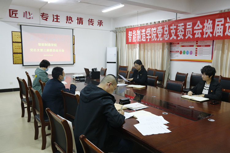 本站讯 3月30日下午,智能制造学院党总支在办公楼519会议室召开智能制造学院党总支委员会换届选举大会,学院全体党员参加,会议由段彩云同志主持,艺术设计学院赵永刚书记莅临指导换届选举工作。