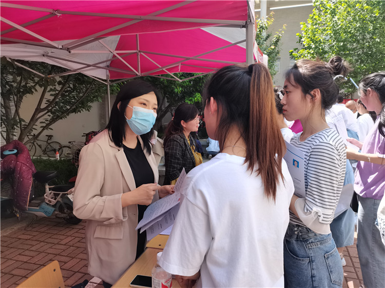 双选会现场学生们积极主动地与用人单位进行沟通交流,就工作岗位、工作地点、园所条件、薪资待遇等问题向用人单位进行咨询,用人单位均一一耐心、细致作答。部分用人单位在双选会结束后进行了进一步的企业宣讲,并对应聘岗位的同学们进行了现场面试。