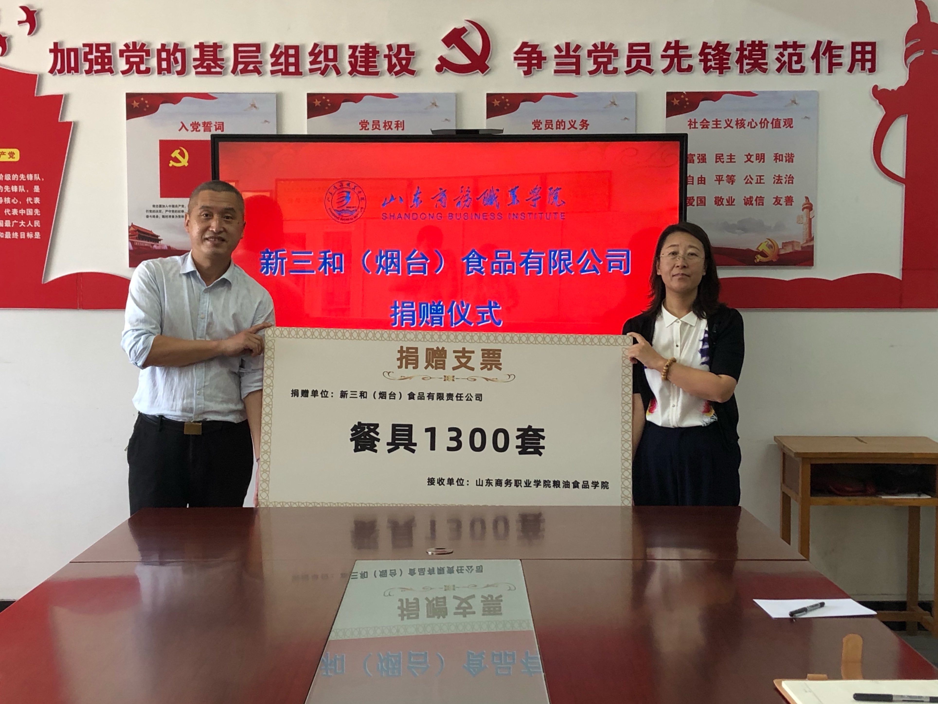 黎海红代表全院师生对新三和(烟台)食品有限公司捐赠1300件生活用品的善举表示感谢,并希望食品学子努力学习,矢志创新,将爱国奉献和实事求是的传统发扬光大,努力达到企业的用人要求,为食品行业百年奋斗目标贡献自己的聪明才智。希望双方继续深化在多个领域的合作,共同培养更多具有工匠精神和创新精神的技术人才。(通讯员:于萍 撰稿:曲小萌 审核:袁磊 梁倩 值班审核:成雪)