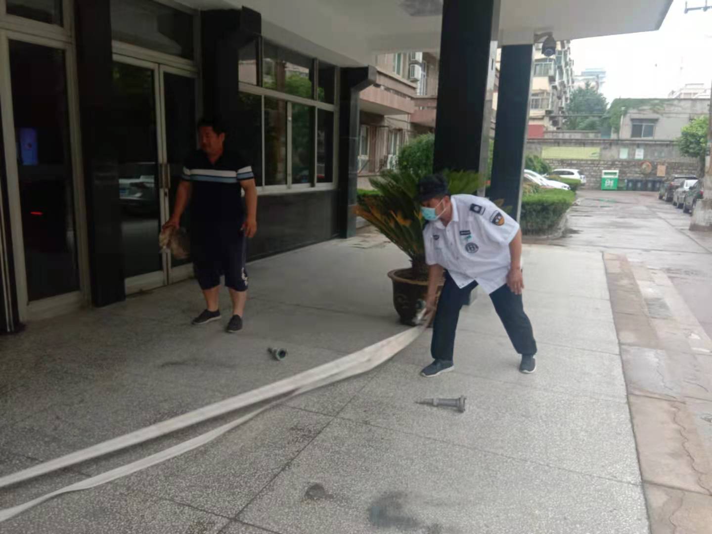 开展消防应急培训演练活动。对物业公司相关工作人员开展了消防知识培训,参与灭火器使用、消防水带铺设使用演练。通过参加培训演练,相关工作人员进一步提高了消防安全意识,掌握了消防知识、技能及火灾应急处置流程,为消防安全工作奠定了扎实基础。