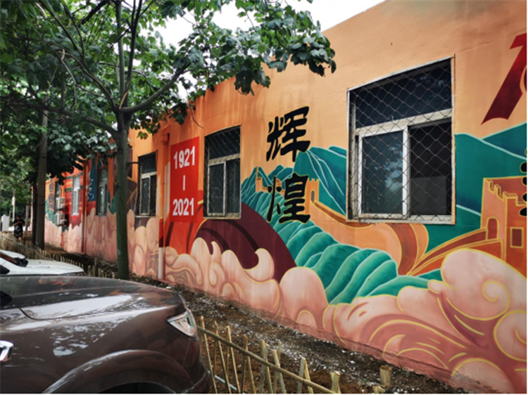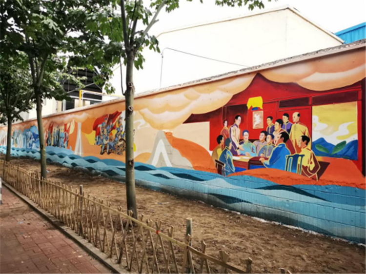 本站讯 2021年6月底,由艺术设计学院承接“百年华诞”党建文化宣传主题墙绘制作项目竣工,该项目受到了中粮油脂山东区党委、中粮油脂有限公司的好评,成为了龙口新港路学校爱国主义综合实践教育基地。