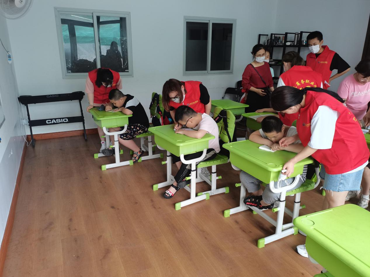 关注特殊儿童用心传递温暖。艺术设计学院暑期“三下乡”弱势群体关爱帮扶实践团在学院党员教师带领下,走进烟台市舜华培训学校开展“爱心护航”志愿活动。这是一所特殊儿童教育培训学校,学校创办人战校长对于艺术设计学院师生的到来表示欢迎。在志愿服务活动中,志愿者们发挥自己所学,将绘画与英语教学相结合,辅导英语学习,教唱英文歌曲;孩子们在老师的带领下,为学院师生表演了儿歌联唱,展示了他们天真无邪的性格和积极向上的心态。最后,志愿者们与孩子们合影留念,孩子们纯洁的笑容紧紧牵绊着每位志愿者的心,大家纷纷表示:“今天的活动只是尽了自己的一份微薄之力,希望社会上更多人都来关注关爱这些孩子们,给他们创造一个和谐、美好的学习生活环境,让他们像正常孩子一样健康快乐成长。”本次志愿服务活动是艺术设计学院暑期“三下乡”社会实践活动的重要组成,有助于在校学生全面认识特殊儿童群体,在传递温暖和爱心的同时,也为社会了解和接纳这个群体贡献出自己的力量。