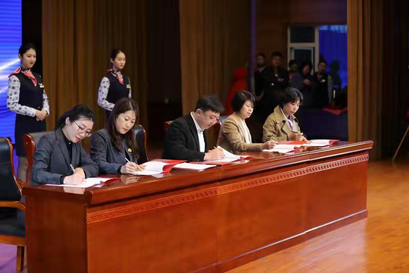 本站讯 11月19日上午,我校受邀参加烟台市文化旅游产业校企(人才)合作联盟成立大会在烟台举行,校企合作与就业工作处处长范彩荣代表参加大会,并出席校企战略签约仪式,与烟台丽景海湾酒店、烟台南山皇冠假日酒店签订校企合作协议书。