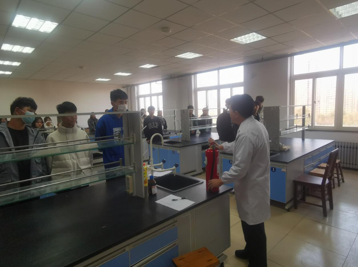 此次活动,分别从紧急火情、危化品扩散、触电休克三个方面进行应急演练。紧急火情应急演练中,赵强老师讲解了消防安全常识、火灾预防措施、灭火器的使用方法,现场示范了灭火器的使用;危化品扩散应急演练中,通过情境模拟,引导学生从东西两侧疏散通道撤离,切断电源,关闭扩散点前后门,正确打开窗、通风系统做到有效通风;触电休克应急演练中,通过模拟学生触电,主要从正确断电、紧急心肺复苏和等待120救援三个方面进行演练。