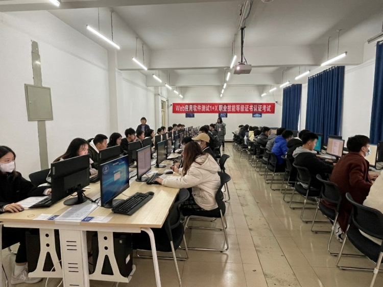 本站讯 12月12日,我校信息工程学院组织开展1+X “Web应用软件测试”和“网络设备安装与维护”职业技能等级证书认证考试工作。2019级软件技术专业和2020级计算机网络技术专业98名同学参加了此次考试。