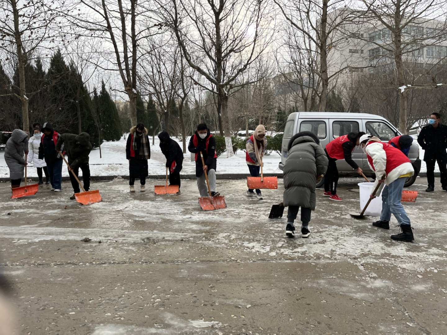 本站讯 入冬以来的第一场大雪,来得突然又迅猛,恰逢2021年山东省职业院校高职组电子商务技能赛项将于本周末在我校实训楼举办,12月17日下午,信息工程学院党总支、教师党支部、学生党支部、优秀学生干部、入党积极分子近五十人齐动员,清扫道路积雪,保畅通、保安全,为迎接省赛积极行动,为展现我校干净整洁的校容校貌贡献力量。