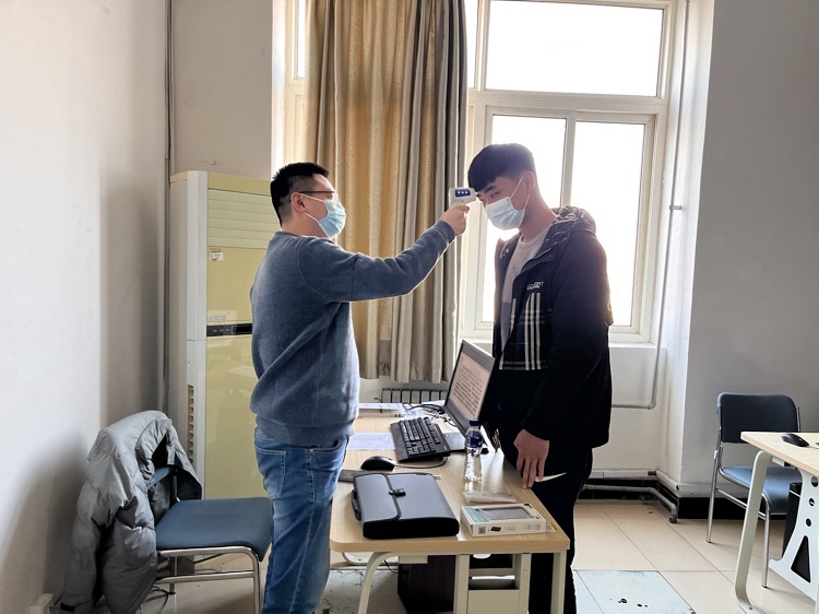 本次演练分两组设定了“教学过程中学生自感体温异常”场景的应急处置程序。演练过程中,参演人员模拟了教学过程中学生自感体温异常的应急处置程序,认真做好了任课老师暂停教学、任课老师打电话给辅导员告知学生情况、辅导员电话联系疫情防控领导小组办公室、安排医护人员到现场处置、辅导员到达教室后将学生引导至所在教学楼的临时留观点等候医护人员、任课教师维护教室秩序、安抚学生不要恐慌、组织登记周边5米内学生信息等各项应急处置措施。