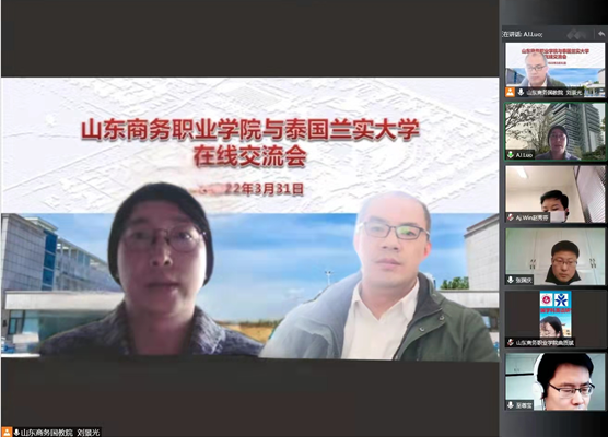 本站讯 3月31日下午,国际教育学院(国际交流处)、经济管理学院和信息工程学院应邀“云”端连线泰国兰实大学。我校经济管理学院和信息工程学院三位教师应泰国兰实大学邀请“云”相聚,首次开启海外授课之旅,双方就2022年开启海外学生线上教学第一课的课程计划、教学大纲、考试形式等问题在线上进行了深度交流。