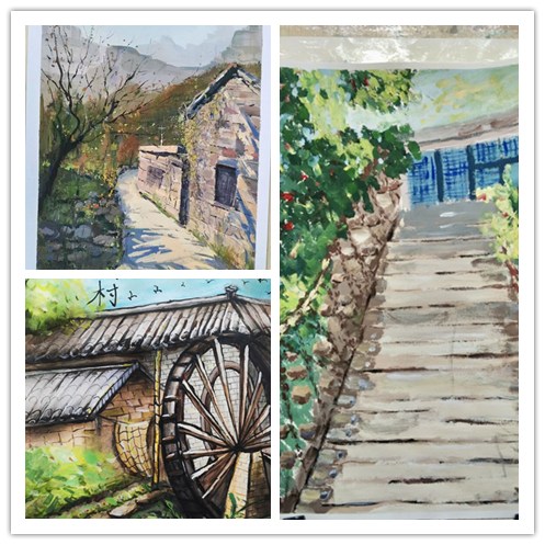 20级环艺专业学生孙凯琳说:“我绘画的这幅昆嵛山旁的乡村民居,是烟台市美丽乡村建设的缩影,希望通过画笔,让更多人了解烟台乡村的美丽,用色彩展现群众的幸福生活。”21级视觉专业学生吕雷朵说:“我绘画的是家乡菏泽的牡丹花,菏泽以牡丹而闻名,寄予对祖国繁荣昌盛、民族富强的美好祝愿。”
