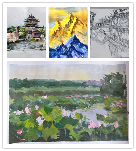 结合疫情防控相关要求,本次社会实践活动采取“回家乡、绘家乡”的方式开展。学院组织山东各地的学生代表,利用暑假社会实践之机,用眼睛和脚步去发掘家乡的变化和美景,用画笔去表达对祖国的热爱。学生们围绕家乡的自然风景、典型建筑、人文风情、城乡变化等,以中国画、素描、速写、水粉、水彩、油画等表现手法进行自由创作。