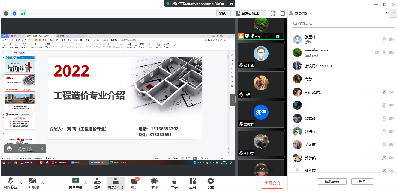 建设工程管理专业黄凤丽老师从学院简介、学习生活环境、优秀毕业生、学历提升、就业前景、第二课堂等方面向新生们详细展开介绍,线上气氛融洽、互动热烈。