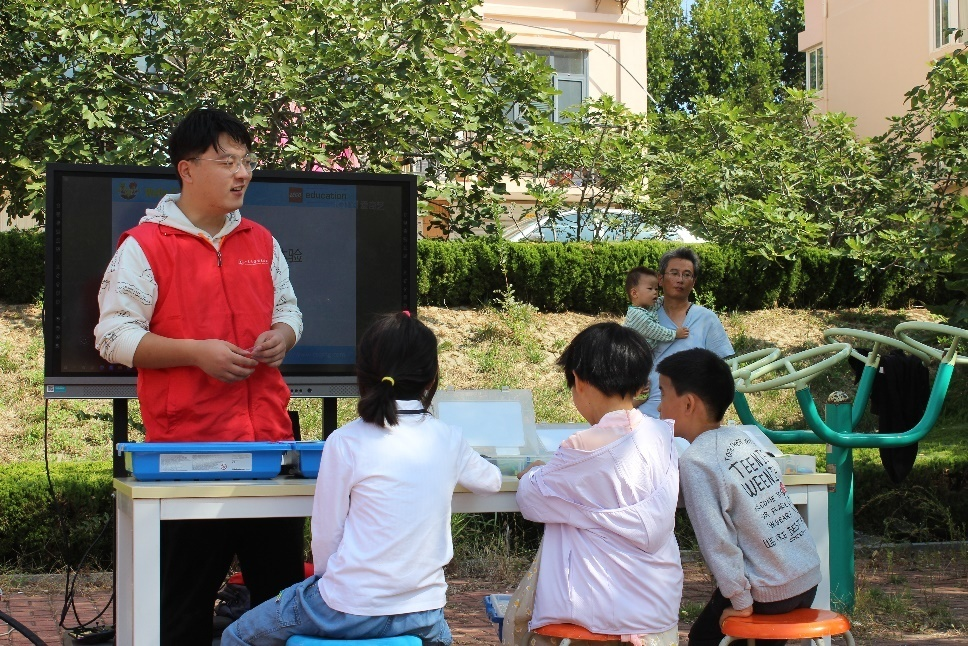 学习协会林涛同学现场开展青少年科普讲座,讲座以工业产品应用为出发点,结合生活的科学现象,设计小风扇等趣味实验活动,参与活动的小朋友紧跟林涛同学的讲课节奏,独立动手制作感应小风扇。