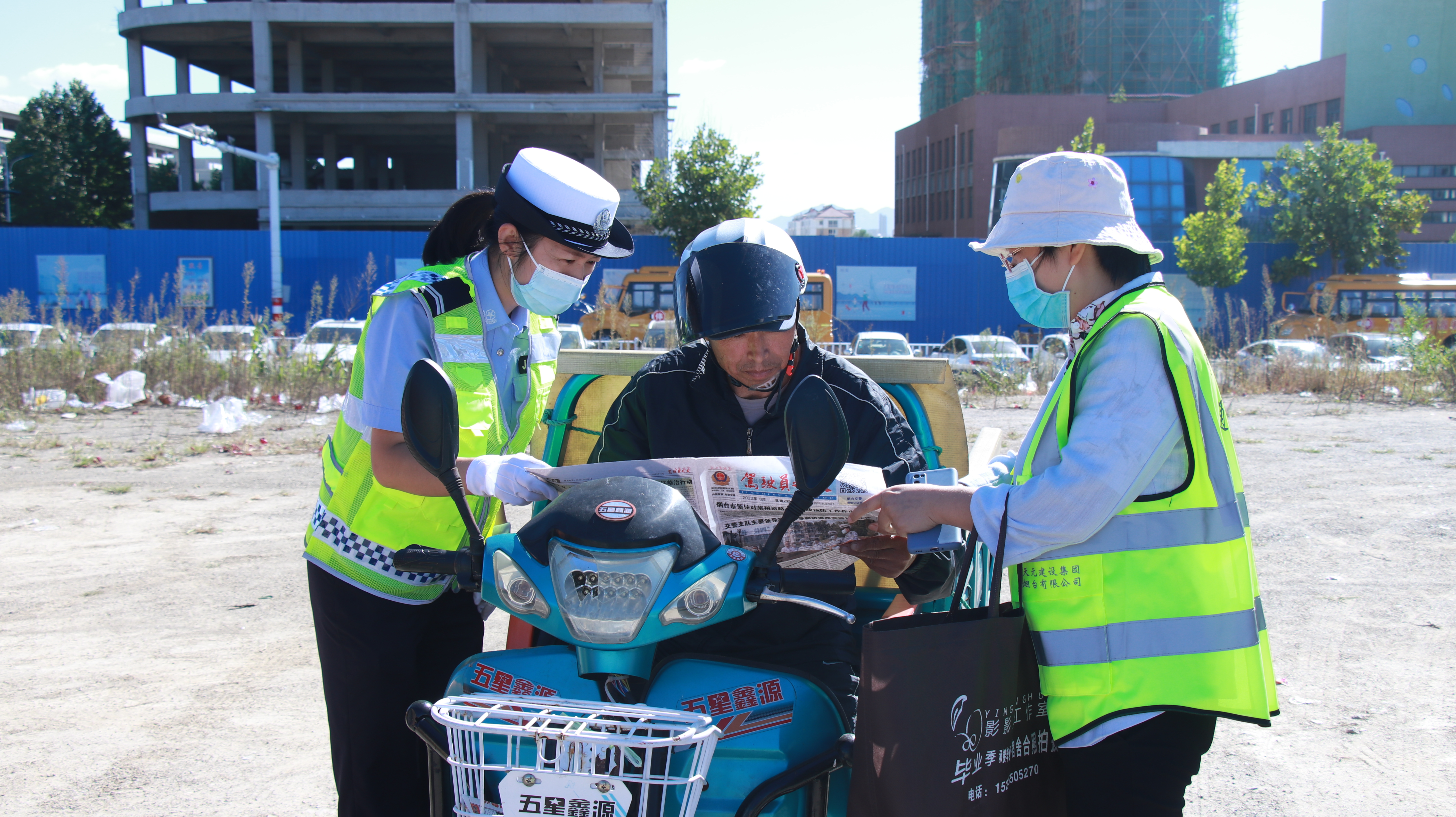 9月24日,学院与烟台交警第五大队深入刘家埠大集,把文明出行、交通安全知识带到群众身边,与群众开展面对面、心贴心的交流,帮助群众特别是商贩解决“出行路上”的一系列问题。近20名建筑学子在培训后“上岗”,有的针对骑行的市民,提醒他们要注意佩戴头盔,减速慢行,注意交通安全,不仅是为了自身安全,也为家人儿女考虑;有的提醒商贩不要超载,文明出行,礼让行人。还有一部分学生身着黄马甲、头戴小黄帽、手持小黄旗在路口配合交警同志开展文明交通劝导服务。学生们在贡献力量的同时,也丰富了知识储备,累积了实践经验,为更好的服务社会打下良好基础,为迎接党的二十大胜利召开营造安全稳定有序的社会环境。