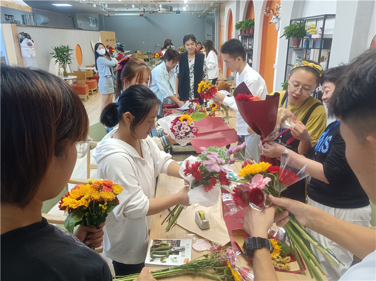 本站讯 天朗气清,秋风送爽。在国庆节来临和党的二十大即将召开之际,9月27日下午,我校图书馆举办了以“喜迎二十大,鲜花献祖国”为主题的插花献礼活动,让同学们在活动中感受花艺之美,感悟爱党爱国之情。