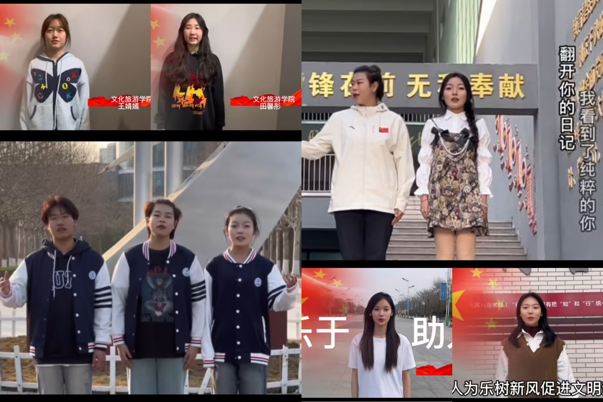 学院还通过悬挂横幅、张贴海报、宣传展板、微信公众号推文等形式,大力弘扬志愿服务精神,立体化开展志愿活动宣传。开展“学习雷锋精神·创建文明校园”黑板报评比活动,各班级通过图文并茂的形式,介绍雷锋生平、雷锋故事、格言、日记等,表达了对雷锋的怀念和崇敬之情;组织志愿者拍摄了《传唱雷锋》短视频,以歌声和舞蹈展现新时代大学生对雷锋精神的感悟,发出了学习实践雷锋精神的倡议。21级学前教育6班刘星雨说:“通过编排短视频,我深刻感受到雷锋同志无私奉献的精神品质,我要努力做新时代‘雷锋精神’的传承人。”