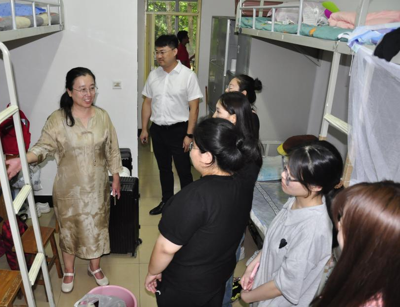 深入宿舍,聆听心声。当天下午,学院党总支书记肖永霞一行走访新生宿舍,对新生的到来表示欢迎,耐心询问新生的适应情况,聆听学生心声,鼓励同学们积极做好未来的人生规划,尽快完成从高中到大学的转变,共同营造良好的宿舍氛围,以良好的精神面貌投入到大学学习和生活中。