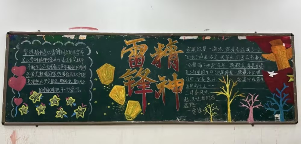 践行雷锋精神,创建美好氛围。为进一步提升同学们的团队协作能力和创新精神,学院开展“传承雷锋精神,彰显时代担当”黑板报设计活动,各班级积极响应,精心策划,同学们查阅资料、集体讨论,深入挖掘雷锋事迹,以生动的文字和形象的插图,将雷锋精神传递给每一位同学,展现出了新时代青年的风采。这些黑板报不仅成为了班级文化的一道亮丽风景线,也成为了同学们学习雷锋精神、践行社会责任的重要平台。