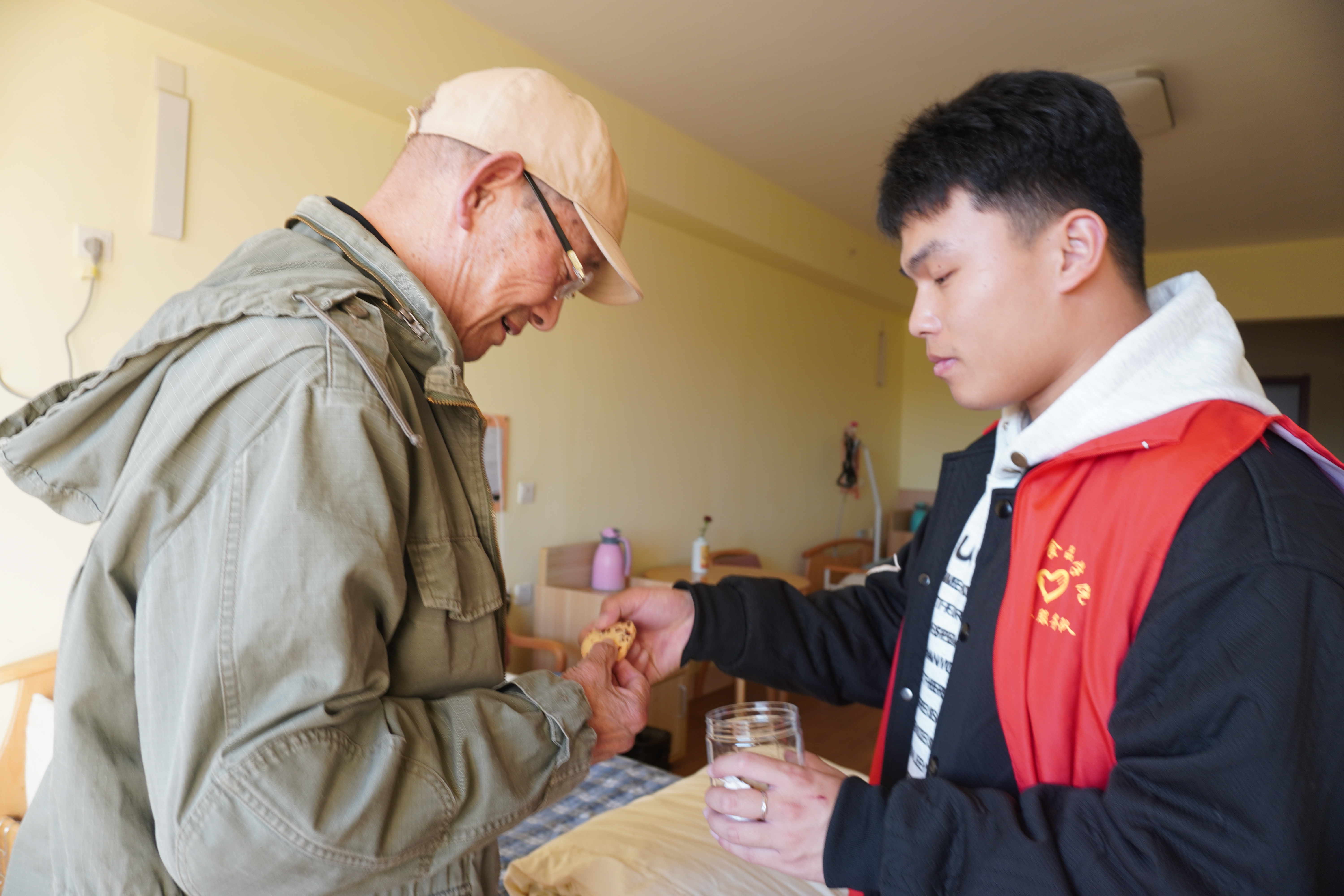 在敬老院志愿服务活动中,学院党总支邀请了专任教师于海洋为老年群体开展“与‘糖’有缘,因‘秘’而聚”的主题讲座。在讲座中,于老师结合专业特点,聚焦老年群体的身体情况,从合理膳食、均衡营养、体育锻炼等方面为老年群体提出建议。学生志愿者们有序地帮助老年人搬好凳子,小心搀扶着他们坐到观众席;面向老年群体宣传防诈骗知识,提高老年群体的防范意识;发挥专业特长,讲解健康饮食和起居习惯等方面的知识;用心用情与老年人聊天,让他们感受来自青年学子的暖心;为老年人送上学生亲自动手做的糕点,表达关爱和爱心……参与其中的李惠鹏同学表示,“通过与爷爷奶奶们交流,我感知到他们的不易,品味到他们的人生经验,他们给我上了宝贵的一课,这坚定了我做志愿服务的决心,我会继续坚持下去的。”