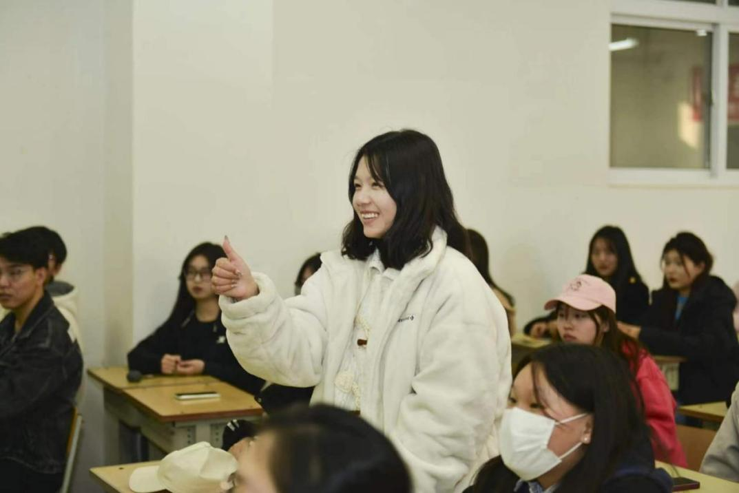 手语课堂不仅是一次富有成效的手语教学,更是一次深刻的情感交流。通过模拟话术和互动游戏环节,使同学们能够用不同的方式与世界交流,培养了学生们的责任担当精神,帮助他们更好地理解特殊人群的需要与感受。在掌握了一门新技能的基础上,拓宽了学生未来的就业渠道,爱聋手语研究中心的翟主任热情邀请同学们去中心实习,真正实现手语知识学以致用。