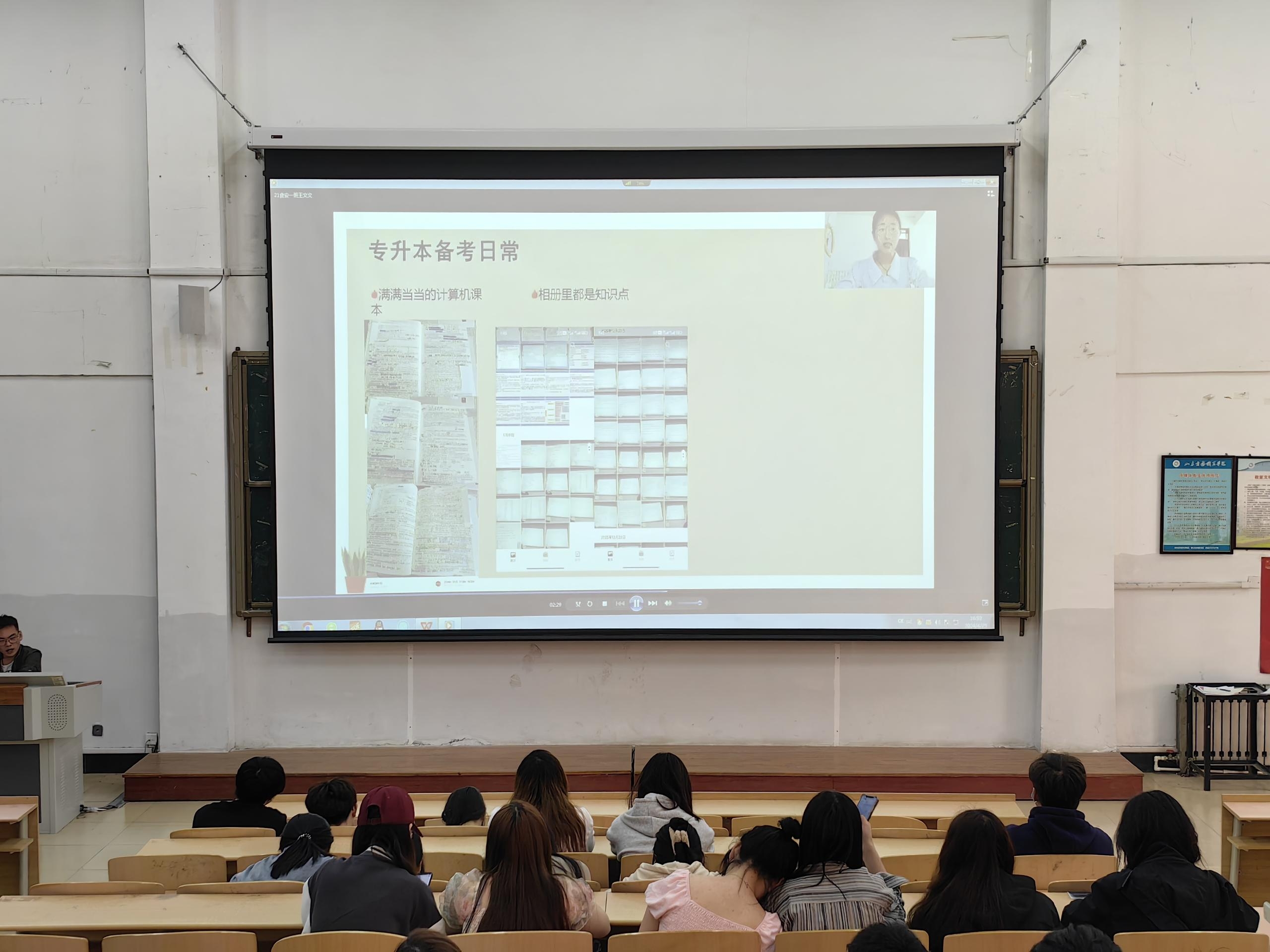 另一位来自食品检验检测技术专业的优秀应届毕业生,通过视频的形式分享了她的学习经验和专升本历程。她表示,自己在大学期间始终坚持认真学习、刻苦钻研,不仅掌握了扎实的专业知识,还积极参与各种学术竞赛和项目实践,不断提升自己的实践能力和创新精神。同时,还分享了专升本学习经验,如何利用在校时间制定阶段性学习计划,有目标地进行复习,将自己独特的学习方法和心得传授给学弟学妹们。
