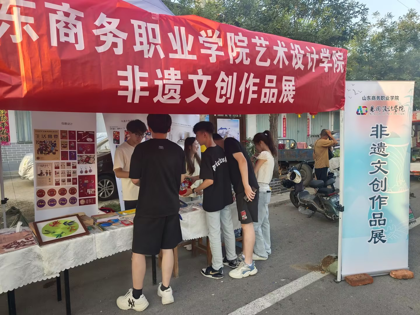 本站讯 为深入贯彻实践育人理念,弘扬传承优秀传统文化,搭建非遗手作交流平台,7月6日,艺术设计学院师生走进蓬莱市柳格庄村,举办“非遗文创作品展”,本次活动采用现场展示及沉浸式体验的方式,带领同学们了解非遗文物设计,欣赏非遗文化的独特魅力,同时丰富村民业余文化生活,助力乡村精神文明和思想道德建设。