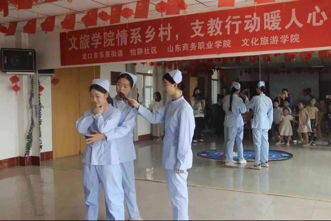 本站讯 近日,文化旅游学院积极响应暑期社会实践的号召,组织志愿者深入烟台龙口市怡静社区开展了“志愿童行 筑梦乡村”三下乡活动,关心关爱乡村社区儿童群体。