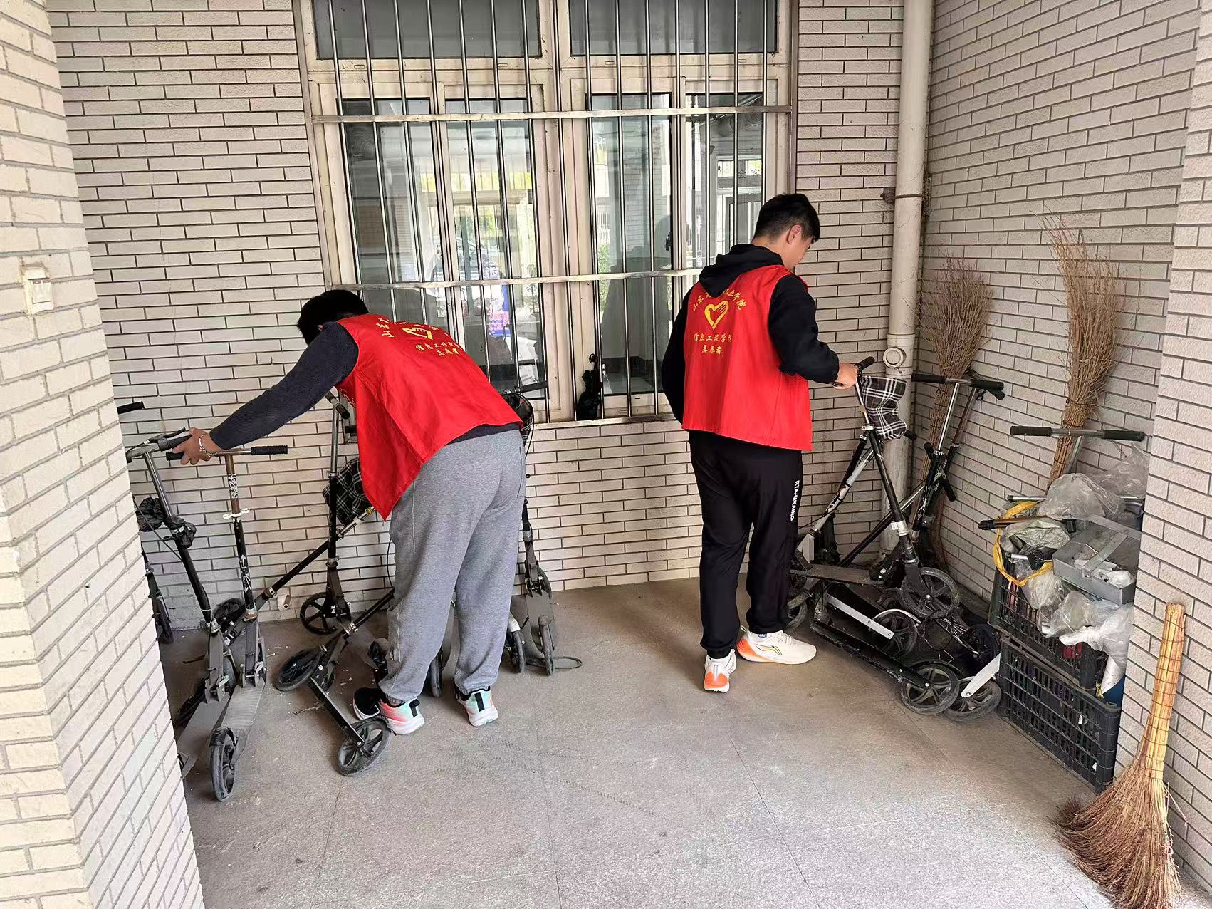 志愿者们分成多个小组走进社区宿舍,认真倾听同学们的需求和建议,制定了详细的行动方案。在活动中有的小组负责打扫公共区域,确保周边环境的整洁;有的小组负责宣传宿舍安全知识,提高同学们的安全意识;还有的小组将乱停乱放的车辆整齐的摆放在规定区域,并引导骑行人员规范摆放,确保不占据道路空间,不影响行人通行,同时,向过往同学积极宣传文明骑行、有序停放的相关知识,倡导同学们养成文明停放的好习惯。