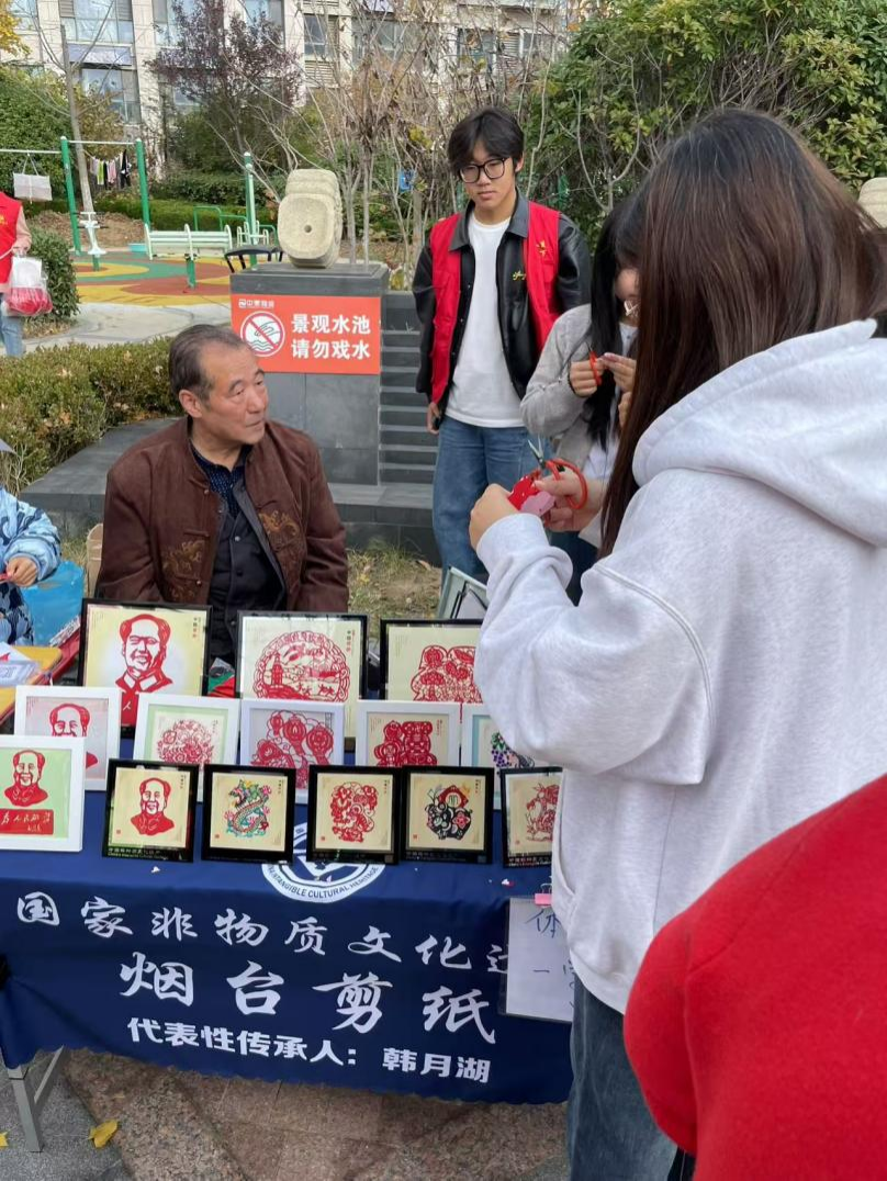 宣传非遗文化。志愿者化身非遗文化传承“小助手”,学习剪纸和柳编,并积极向社区居民宣讲,传授剪纸及柳编的技巧,让更多人亲手体验传统技艺,感受非遗文化的博大精深。