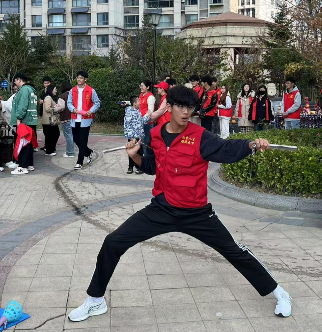 表演舞蹈武术。志愿者组建了文艺小队,优美的舞蹈、动听的歌曲和变幻多端的双节棍,被一一呈现,精彩纷呈的表演吸引了众多社区居民的关注,展现出经管学子的蓬勃朝气。