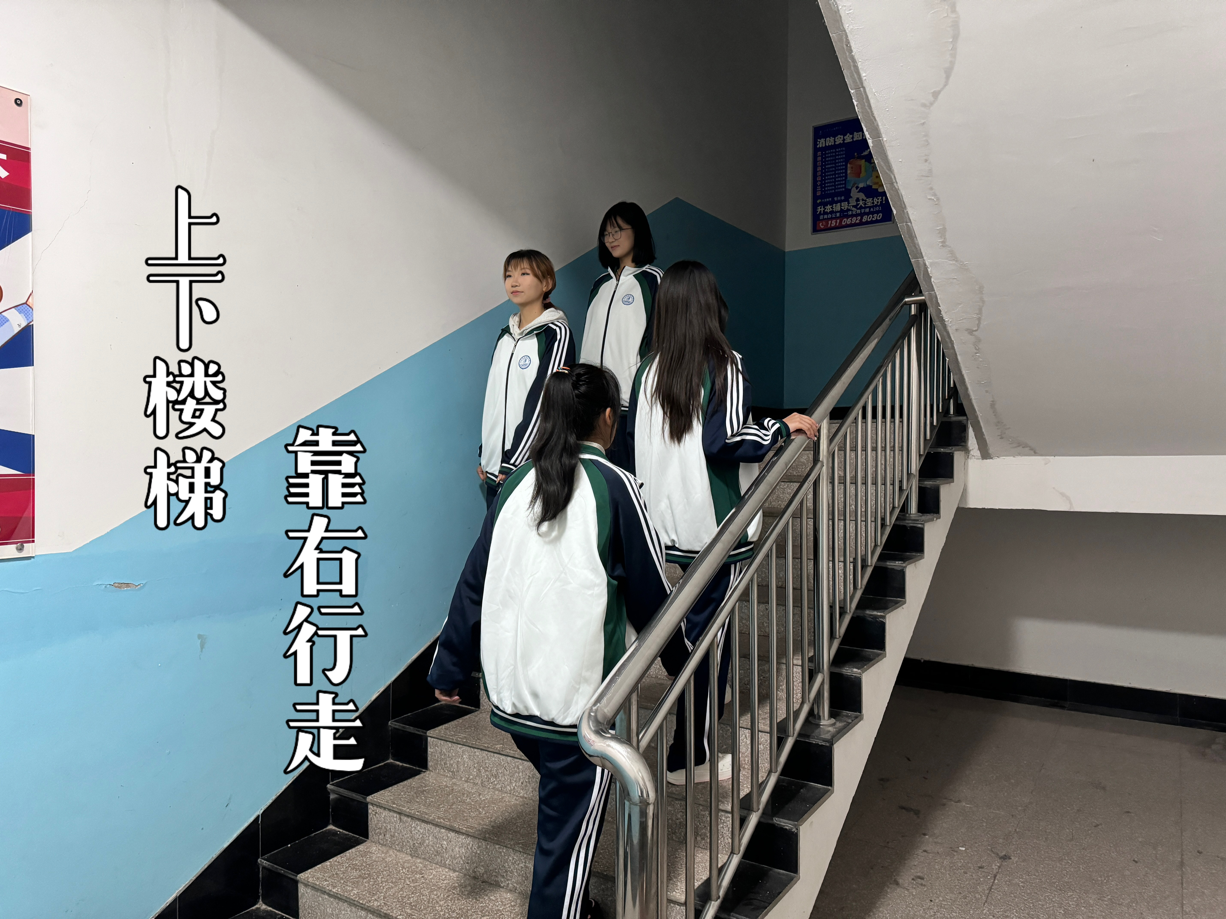 其中,23级婴幼儿托育服务与管理4班的王欣怡同学所在小组,以“上下楼梯靠右行走”为主题进行了模拟表演。王欣怡同学认真解说道:“靠右行走不仅是基本的文明礼仪,更是重要的安全规则。在公共楼梯间,靠右行走能确保人流有序,避免对冲碰撞,特别是在学校课间时段,规范行走能有效维持高效通行秩序。在紧急疏散时,这一规则更能发挥关键作用,利于快速疏散人群,防止拥堵,保障生命通道的顺畅。”