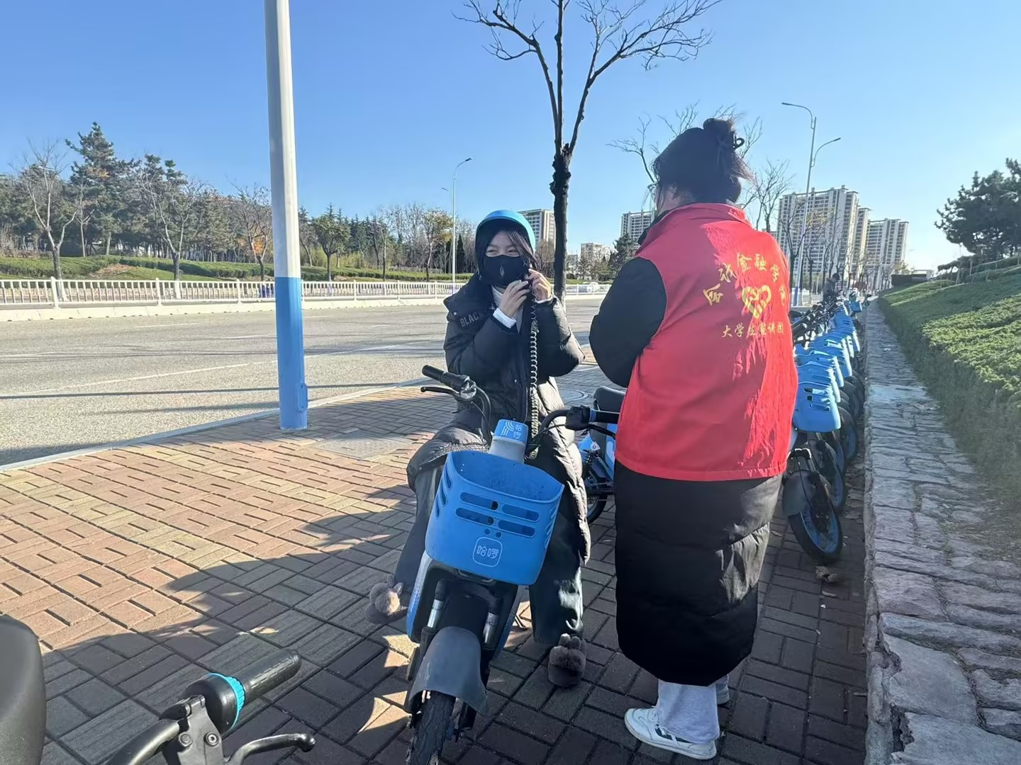 志愿服务,汇聚安全力量。为了确保志愿者们能够胜任“安全骑行小卫士”的职责,学院组织了为期一周的专业培训。培训内容涵盖了电动车自行车骑行安全知识、交通规则解读、紧急情况处理技巧以及志愿服务礼仪等多个方面。通过培训,志愿者们不仅掌握了丰富的安全知识,还提升了自身的沟通能力和服务意识。培训结束后,志愿者们正式上岗,他们活跃在校园内的各个角落,成为了校园安全的一道亮丽风景线。他们不仅在日常骑行中以身作则,严格遵守交通规则,还主动向其他骑行者宣传安全骑行的重要性,提醒他们佩戴安全头盔、不超速行驶、不随意变道等。此外,志愿者们还积极参与到校外交通秩序的维护中,为社会贡献自己的力量。